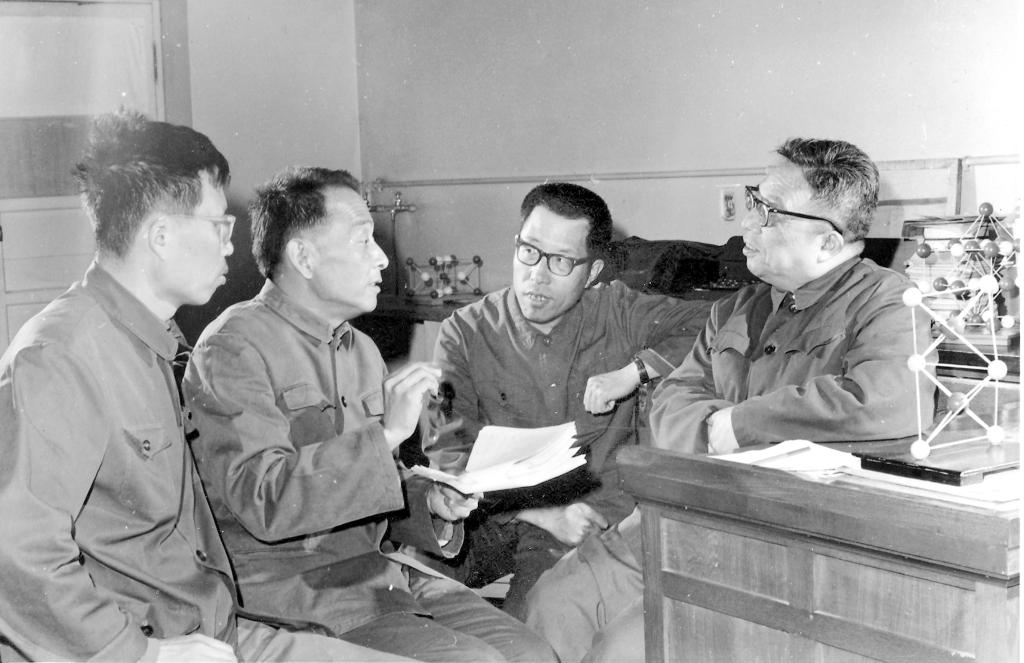 图5:孙家钟(左2)等人与唐敖庆教授(右1)交流