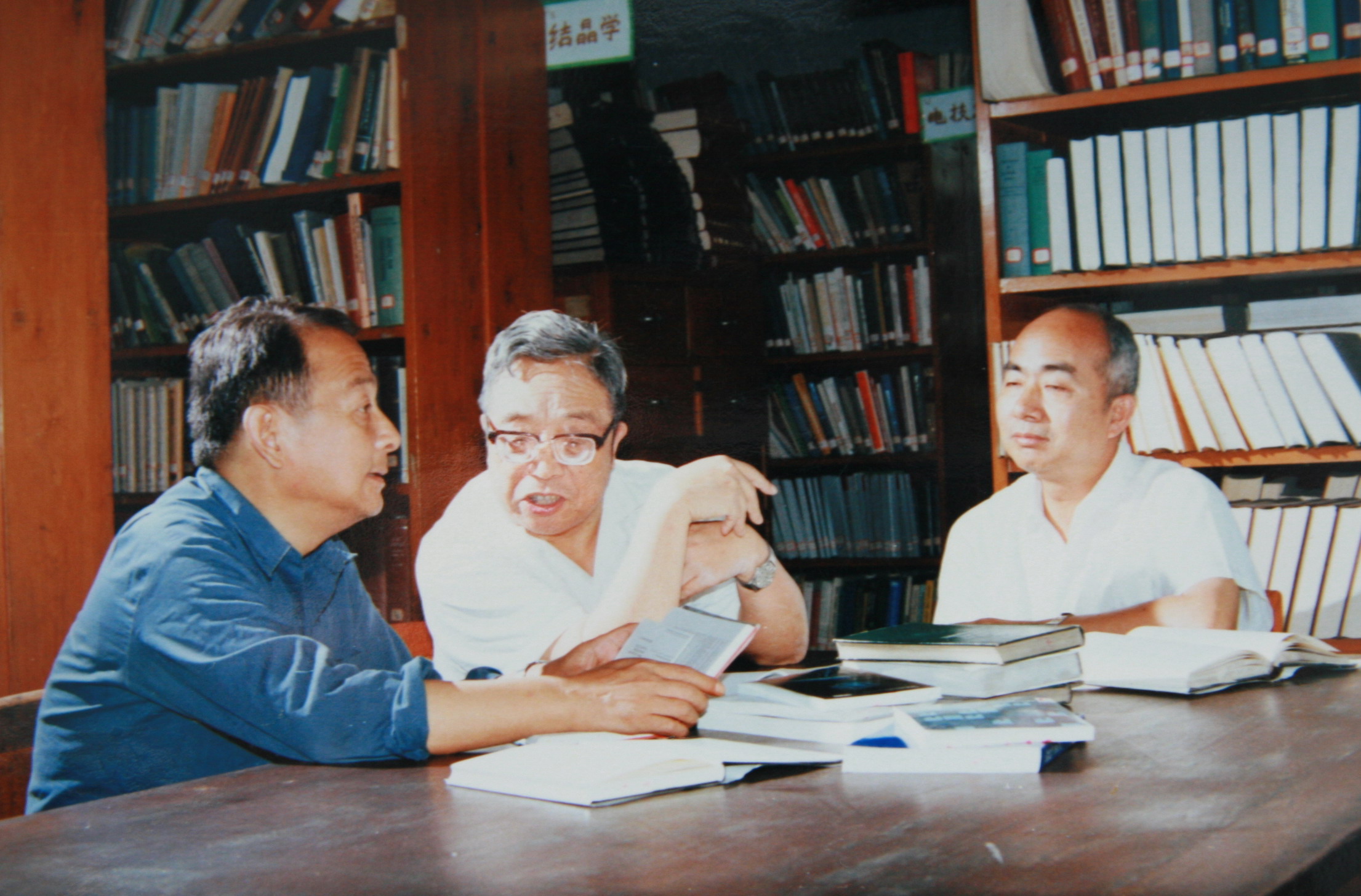 图6:唐敖庆教授(中)与孙家钟(左)、江元生(右)研讨