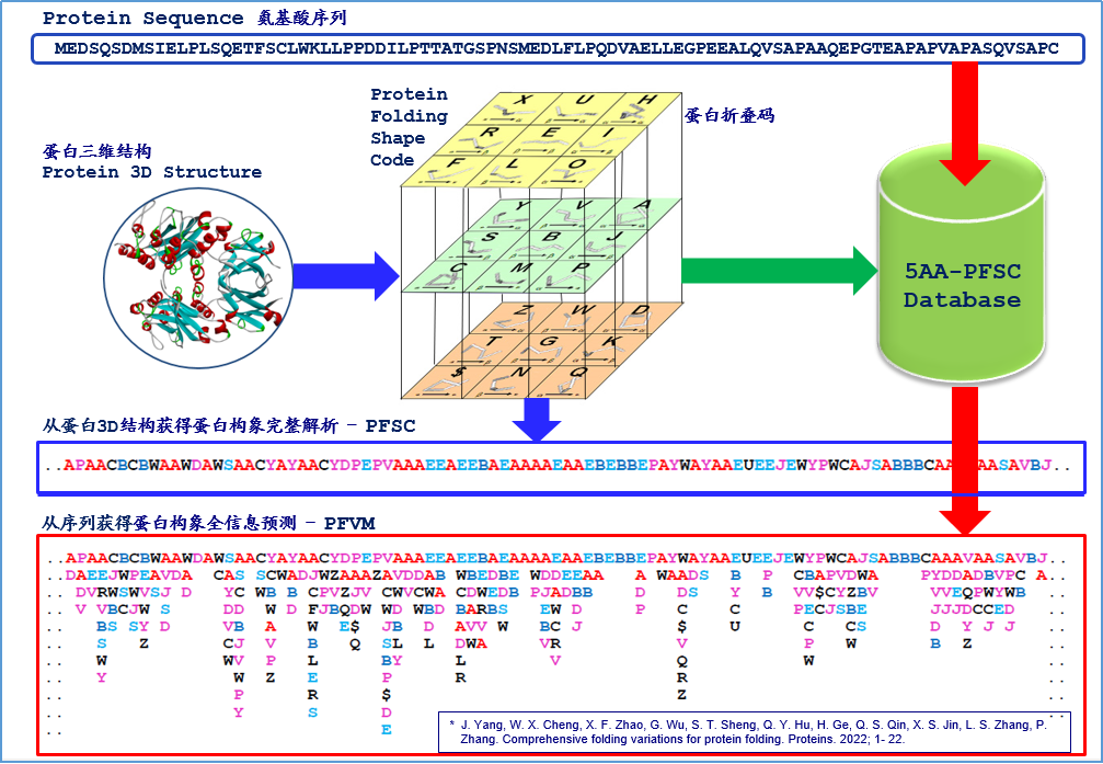 为了将目标瞄准蛋白结构,2006年我们在美国创立了微纳米技术公司,接着在中国成立麦克罗生物技术公司,专攻蛋白折叠难题。蛋白质的折叠是空间的连续变化,运用在EMC易倍平台化学系和理化所打下的数理化基础,我们成功地将描述蛋白质在空间的折叠构象的连续变化函数转变为量子化的矩阵函数。然后根据节点,推演出描述蛋白折叠封闭空间的数字化的蛋白折叠码。蛋白构象折叠码不仅具有独特的数学意义,而且具有明显的应用特征。针对任何已知的三维结构蛋白质,蛋白指纹码可以对其折叠构象提供一个完全描述,不但包括有规则的二级结构片段,而且还包括了无规则的三级结构片段。针对任何已知的蛋白序列,蛋白指纹码可以提供一个折叠构象变化矩阵。该矩阵一目了然地展示了蛋白质沿着序列的构象折叠变化。依据该矩阵可以衍生大量的折叠构象,涵盖每一个蛋白质序列可能包含的天文数字的构象。进一步,可以预测蛋白的多重三维结构。关于这些基础研究的进展,2008年和2022年,我们在国际蛋白质杂志上先后发表两篇文章(Jiaan Yang , Comprehensive description of protein structures using protein folding shape code.Proteins;71.3:1497-1518 (2008);J. Yang, W. X. Cheng, X. F. Zhao, G. Wu, S. T. Sheng, Q. Y. Hu, H. Ge, Q. S. Qin, X. S. Jin, L. S. Zhang, P. Zhang. Comprehensive folding variations for protein folding.Proteins. 2022; 1- 22.)。更重要的是运用蛋白构象指纹可以揭示药物分子的多重蛋白靶标,可以揭示蛋白突变对疾病的影响,同时可以支持生物大分子药物的研究等等。针对新冠病毒的研究,2021年,我们运用蛋白构象指纹揭示新冠病毒变异株的进化特征(Yang J, Zhang P, Cheng WX, Lu YY, Gang W, Ren G. Exposing Structural Variations in SARS-CoV-2 Evolution.Scientifc Reports2021;11.1:22042),2022年, 我们进一步运用蛋白构象指纹分析了大量研发中的新冠病毒抗体和抗原片段-片段之间和残基-残基之间的识别的规律(J. Yang, P. Zhang, W. X. Cheng, G. Wu, Q. T. Niu, L. Yang, S. Luo, X. H. Lin and L. S. Zhang. Severe Acute Respiratory Syndrome Coronavirus 2 Epitope Mapping for Antibodies.ImmunoHorizons,2022, 6 (6) 344-355)。这些结构信息将大大促进对抗体和疫苗的结构认知和药物的研发。蛋白构象指纹发展不仅仅展示了基础研究的重要性,而且显示了促进生命科学研究和生物医药研发的潜在作用。